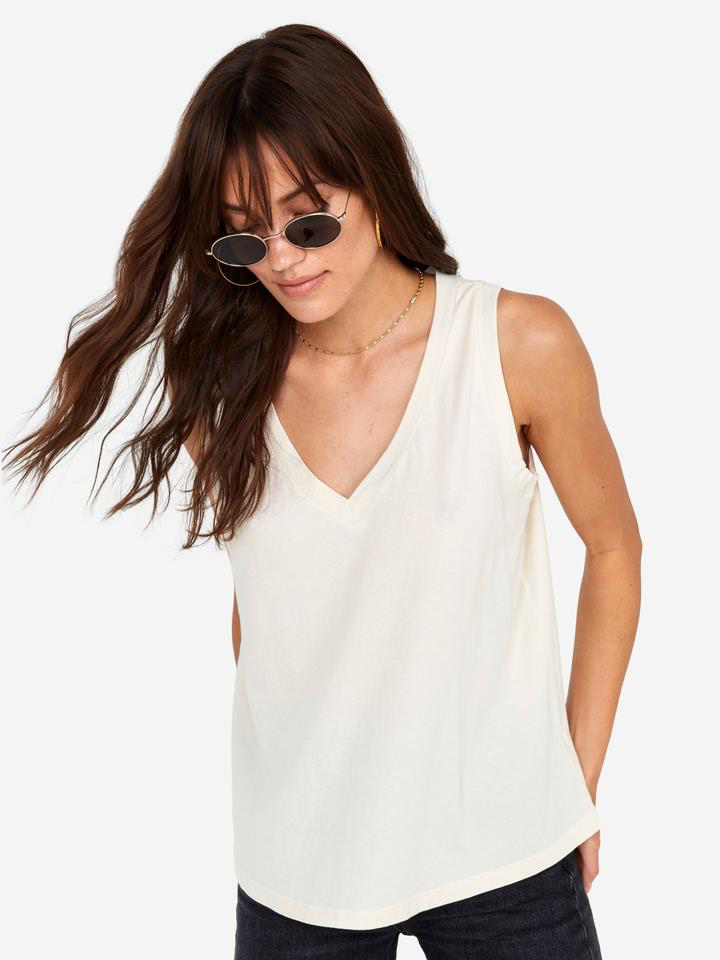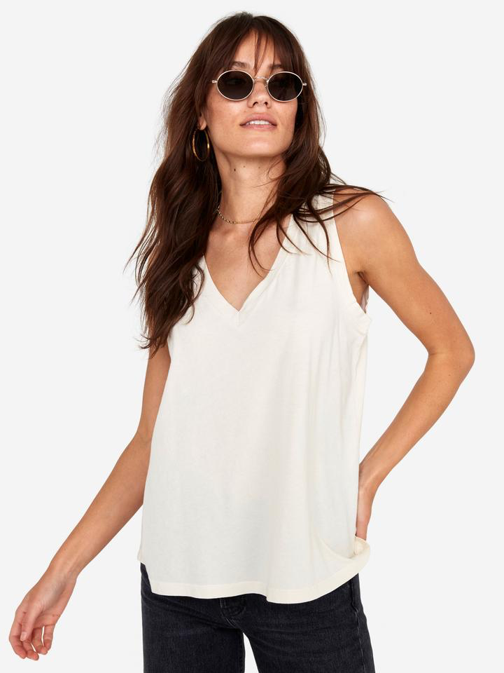 A relaxed fit v neck tank with a baseball hem is made with GOTS Organic Cotton Jersey. The V Tank has gone through a special wash to give it that worn-in hand feel.
