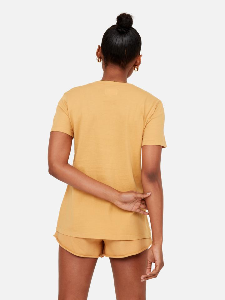 Our relaxed fit classic v neck tee is made with GOTS Organic Cotton Jersey. The Classic V has gone through a special wash to give it that worn-in hand feel.