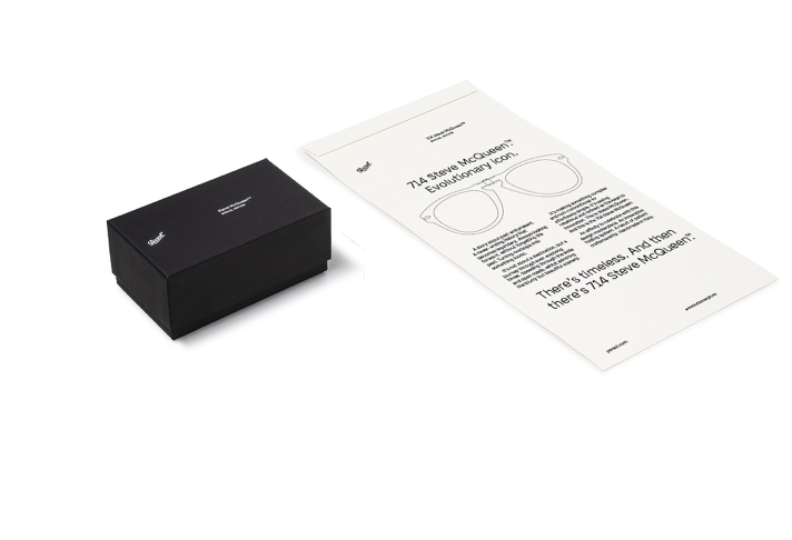 Introduced in the 1960s as a folding version of the 649, the 714 was the first ever folding glasses model. The iconic pilot shape, keyhole bridge, timeless acetates and foldable system make it a masterpeice of Italian craftsmanship, requiring ten additional manufacturing steps compared to standard models. The Steve MqQueen edition celebrate an icon with all the details of the original model worn by the actor.