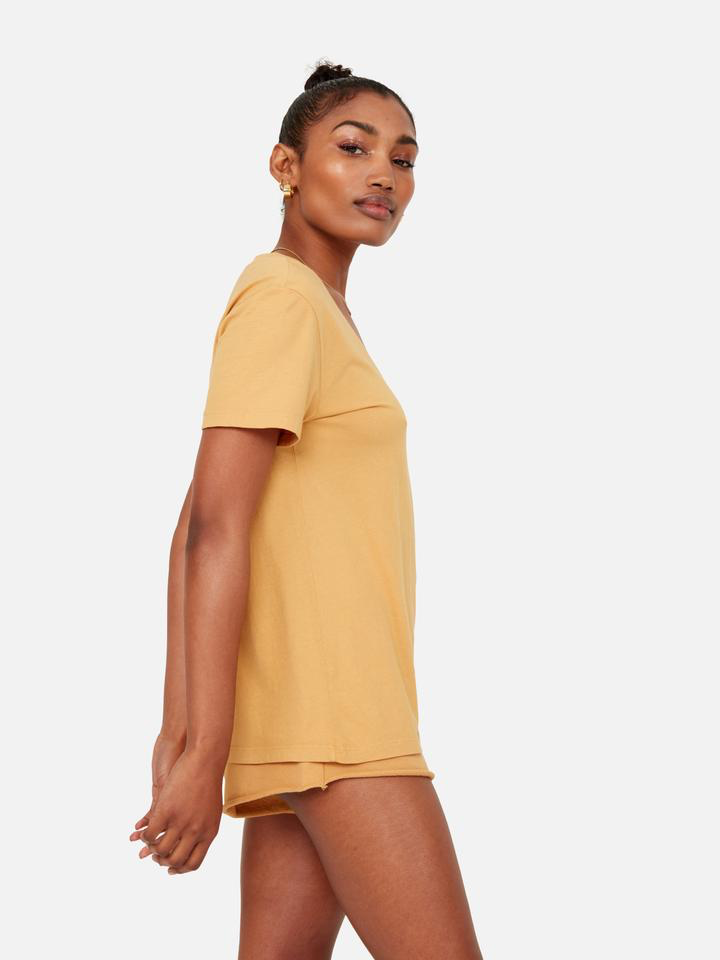Our relaxed fit classic v neck tee is made with GOTS Organic Cotton Jersey. The Classic V has gone through a special wash to give it that worn-in hand feel.