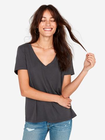 Our relaxed fit classic v neck tee is made with GOTS Organic Cotton Jersey. The Classic V has gone through a special wash to give it that worn-in hand feel.