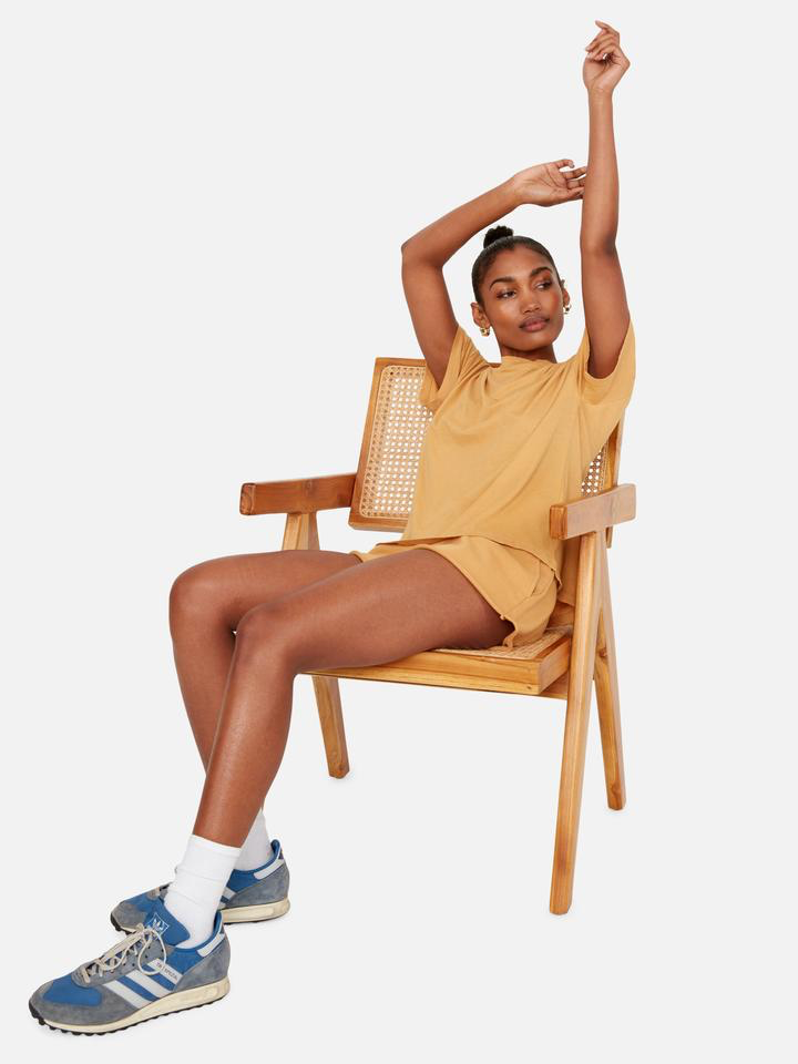 The Vintage Boxy Crew is a super relaxed fit crew tee featuring slouchy shoulders, a high/low raw edge rib neckband and 5 thread detailing.
