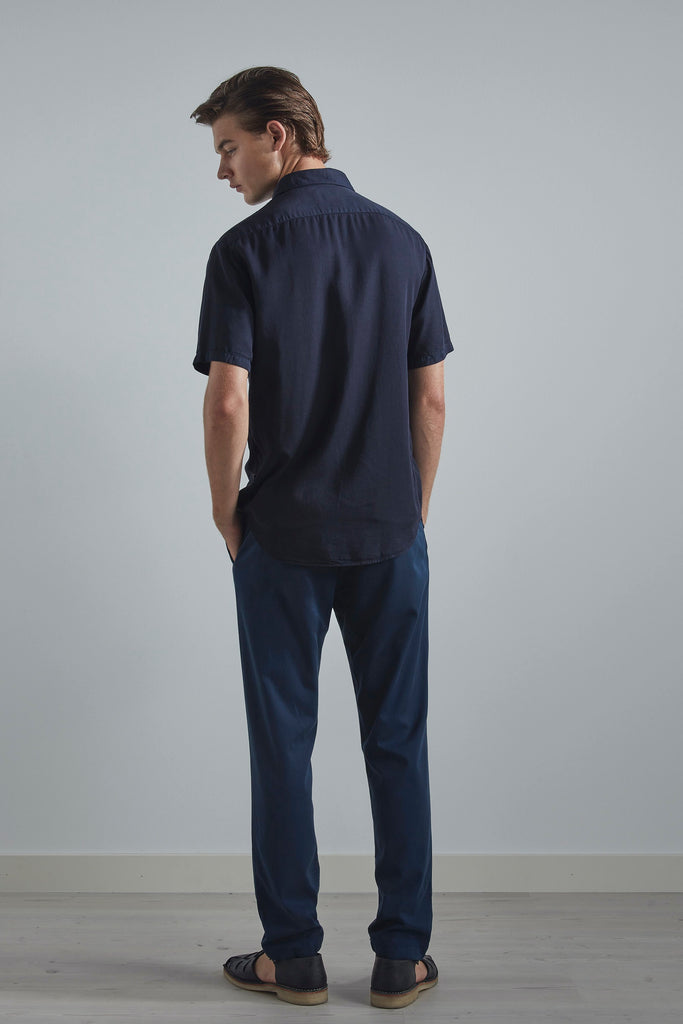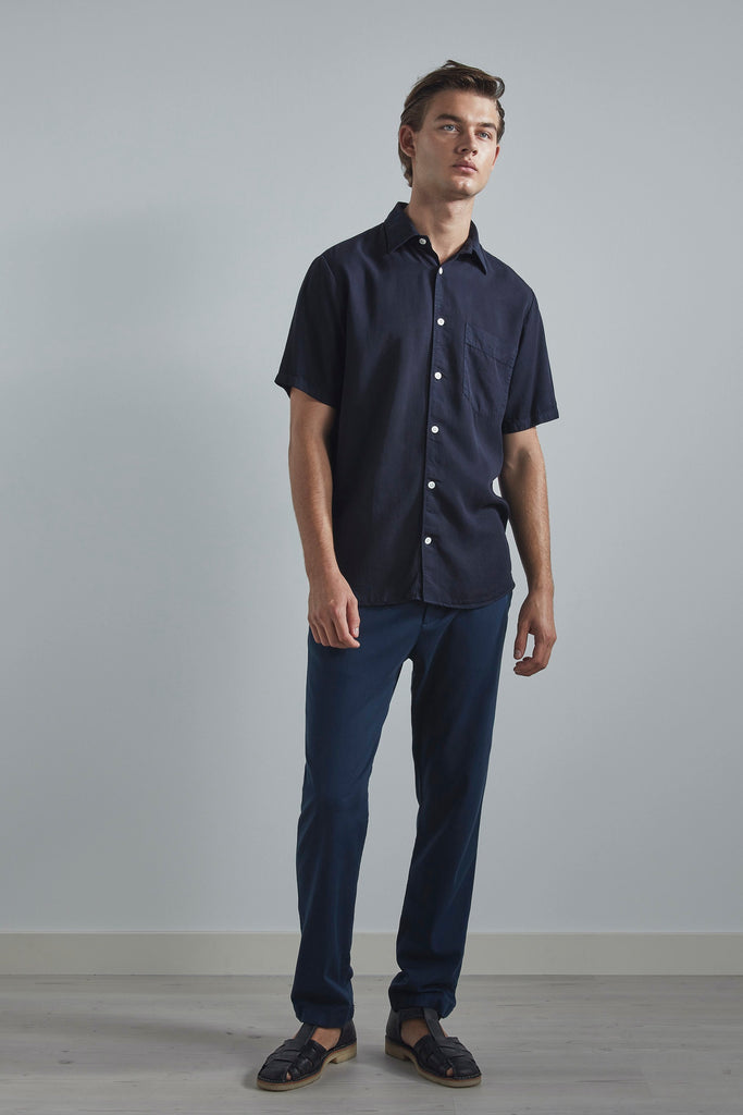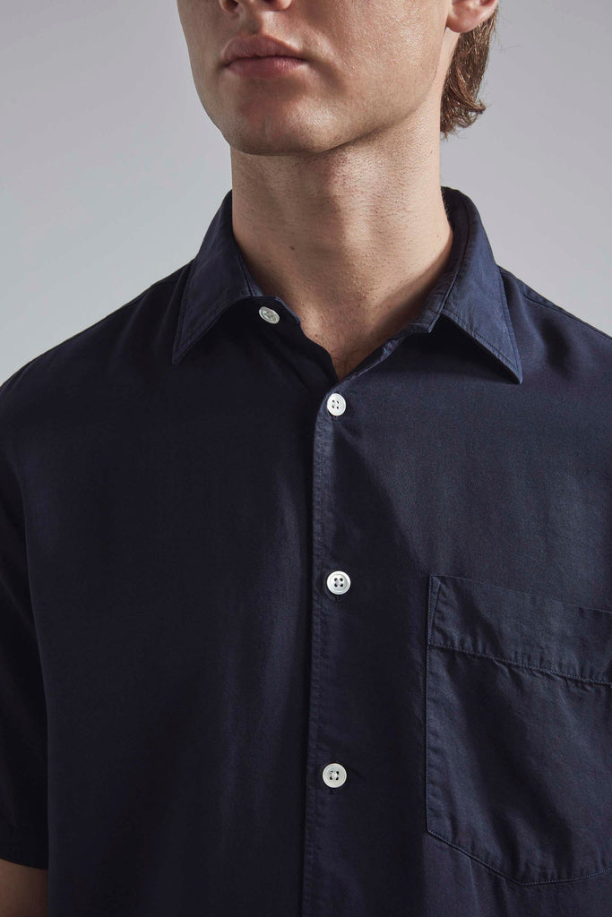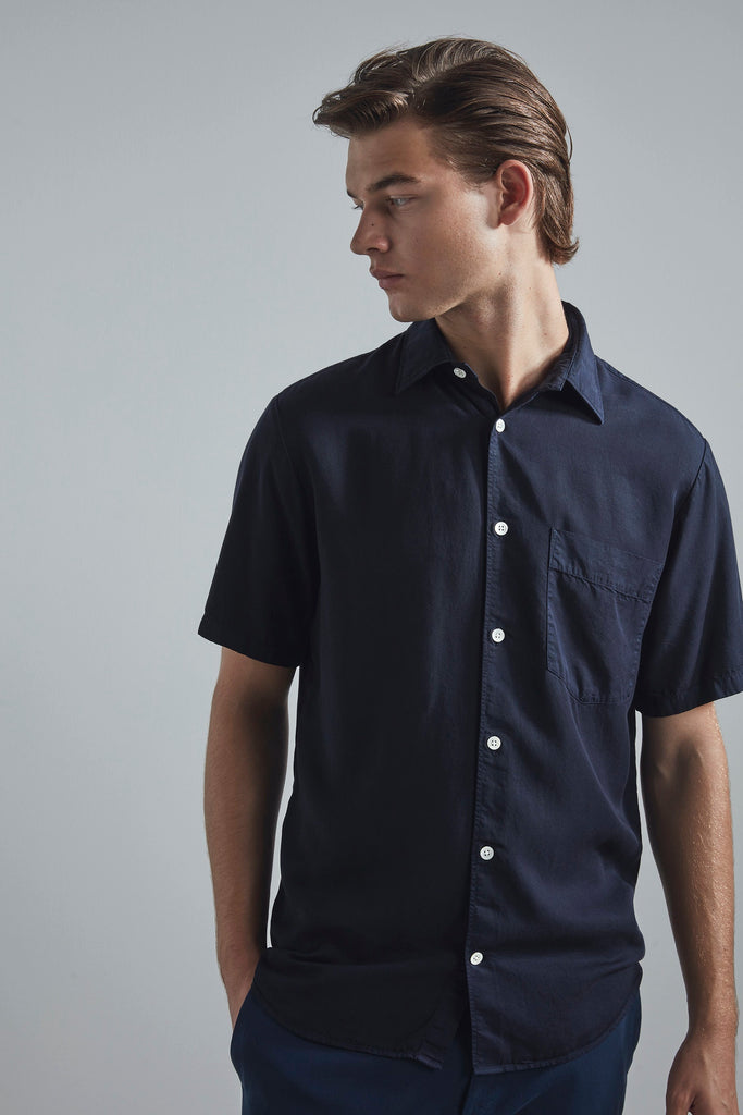 A classic shirt, cut in a straight silhouette with minimal detailing. Made in a smooth TENCEL™ Lyocell and garment-dyed, giving a faded patina to the garment.