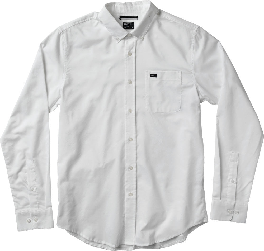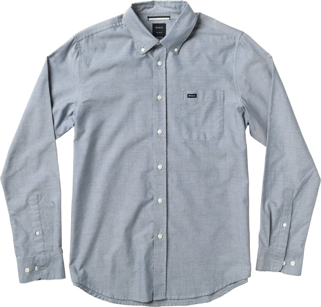 The RVCA Boy's That'll Do Oxford is a slim fit, long sleeve, button down woven shirt with one patch pocket at left chest and buttons at collar points. The shirt comes with a RVCA solo label at pocket.