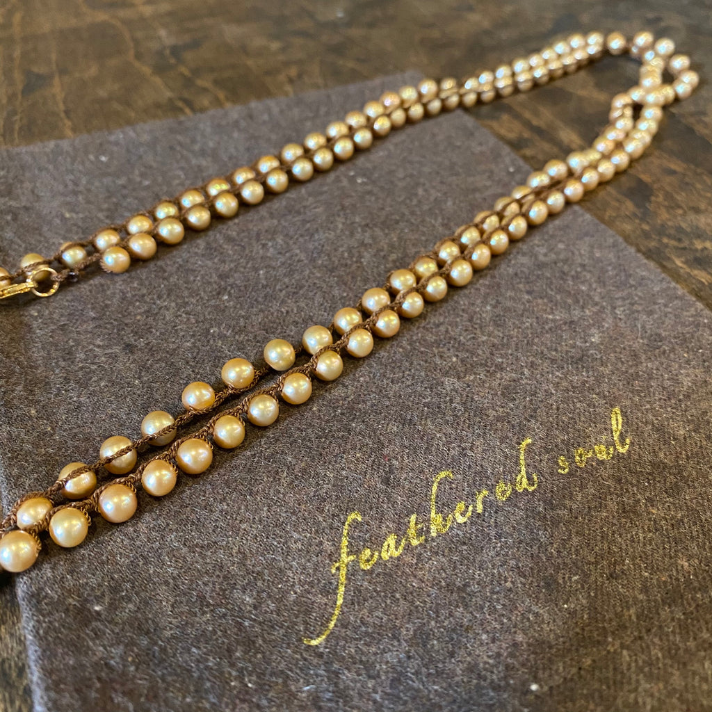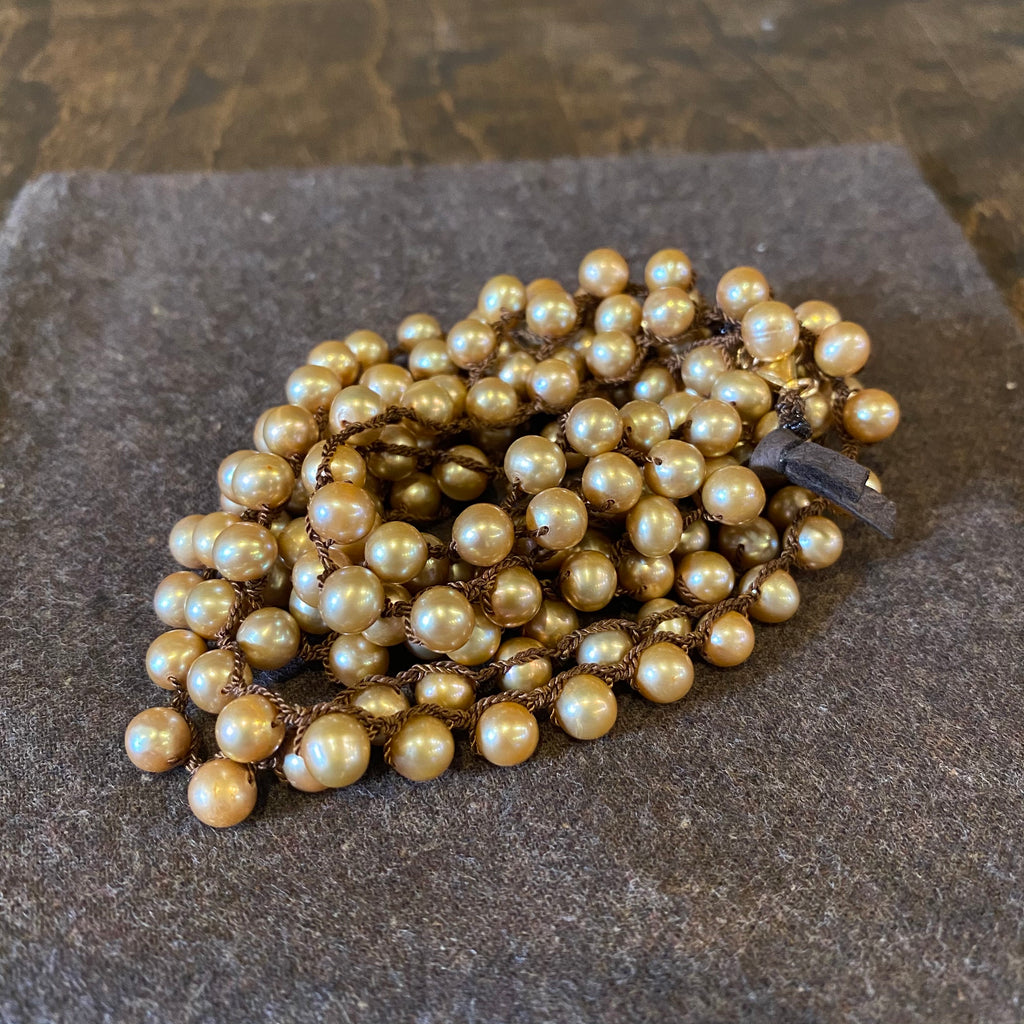 Beige 6mm Pearl on Dark rown Silk - 58"